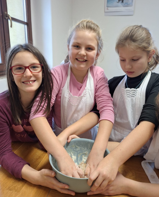 8.12. 2025 3.A vyjela na adventní dílničku s programem na faru do Robous. Programem nás provedla Míša s Aničkou (Muzeum Jičín), děti si vyslechly vše o adventu a svátcích, které během adventu máme. Míša s Aničkou vše názorně v převlecích předváděly a doprovázeli i písničkami. Poté se děti rozdělily do dvou skupin. Jedna skupina pekla mikulášské perníčky a druhá vyráběla řetěz z přírodních materiálů, samozřejmě se vyměnily. Moc děkujeme za tento dopolední vánoční program. Děti se dozvěděly spoustu nového a vyrábění i pečení je moc bavilo.